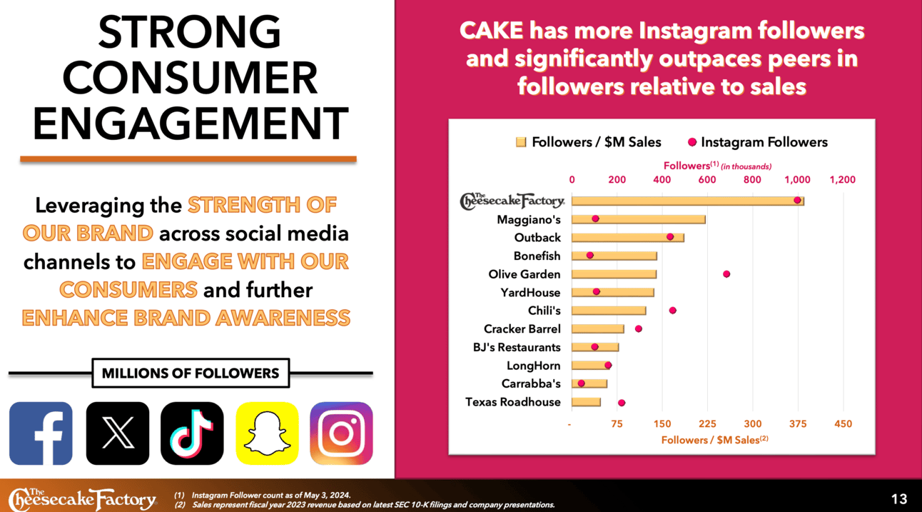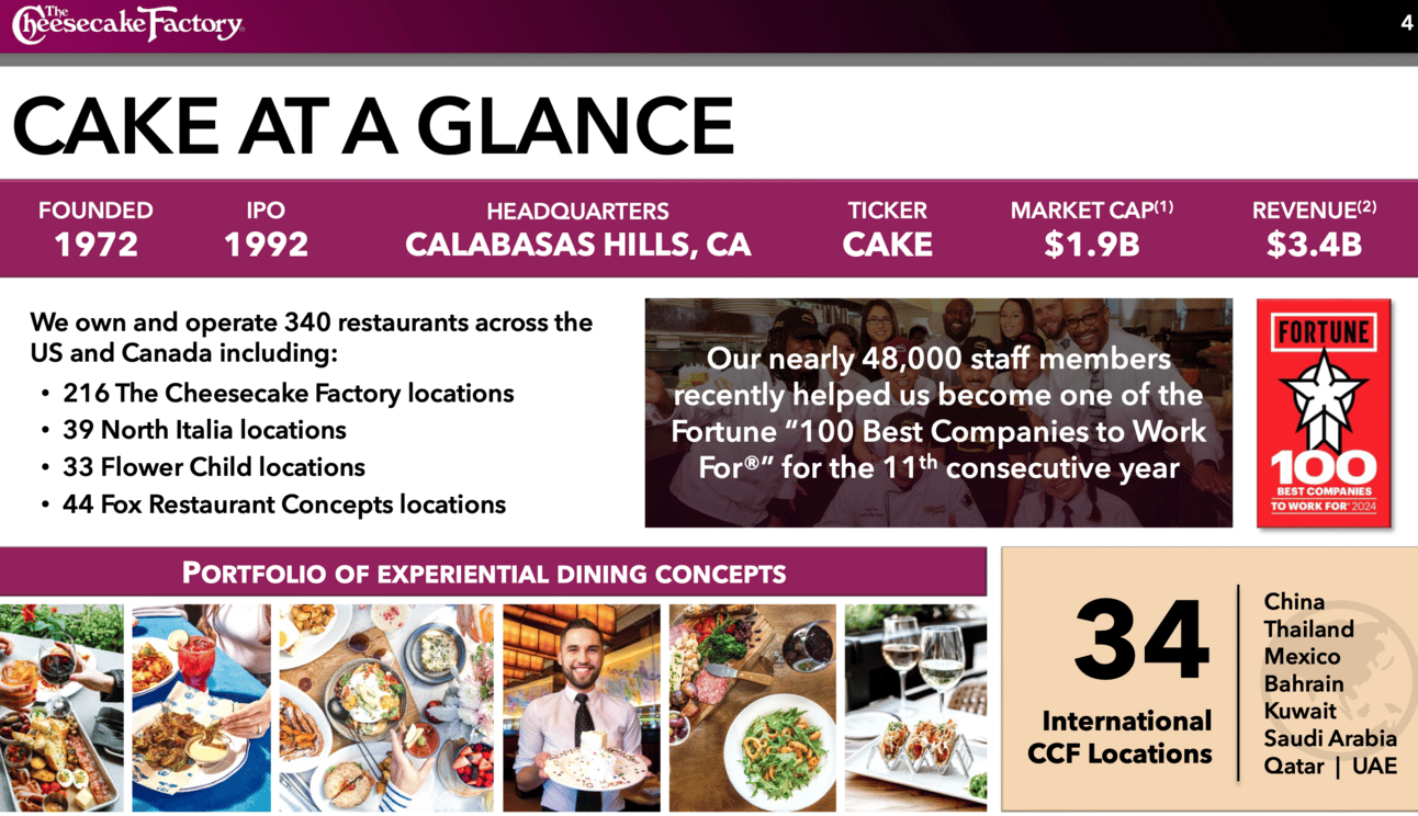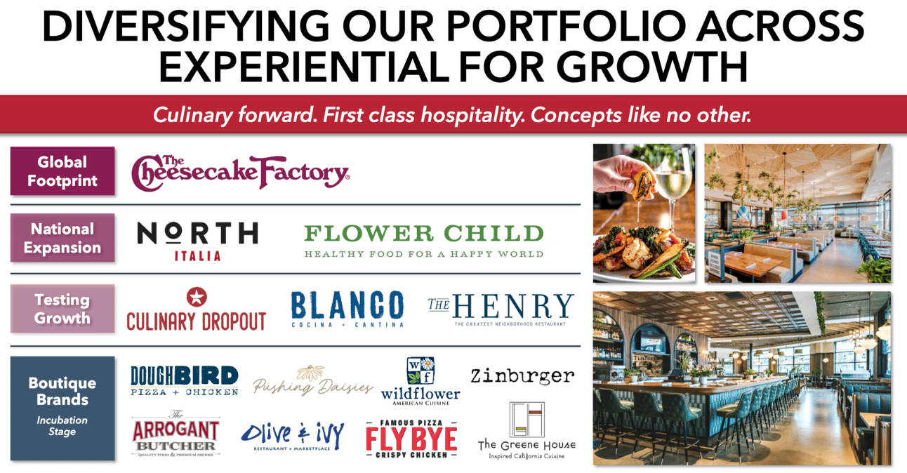 Expansion and Diversification: The company's diverse portfolio, including brands like North Italia and Flower Child, broadens its market reach and reduces reliance on a single brand. The expansion into international markets, particularly with The Cheesecake Factory brand, offers additional growth opportunities.